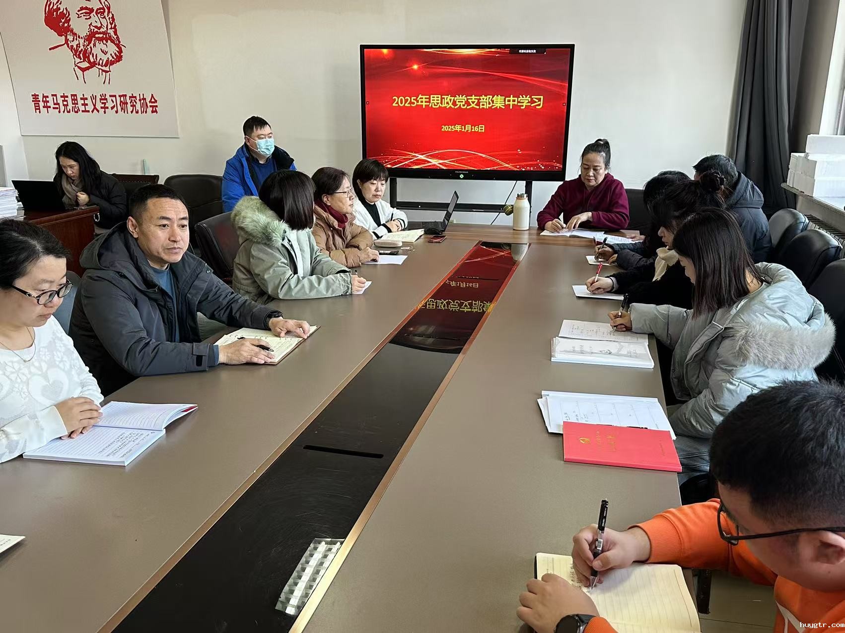 1月16日上午9:00,思政党支部在四楼党员活动室开展集中理论学习,支部书记范功利主持会议并讲话,全体党员参加学习。