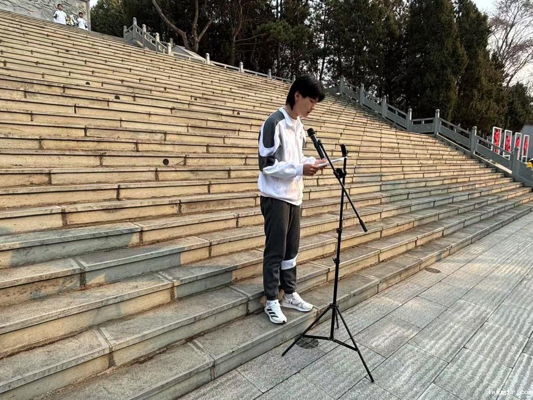 苍松翠柏掩映下的烈士陵园庄严肃穆,师生列队肃立于革命烈士纪念碑前。活动在雄壮的国歌声中拉开帷幕,全体人员垂首默哀,深切悼念为民族独立、人民解放和国家富强献出生命的革命先烈。学生代表抬着花篮缓步上前,将承载敬意与追思的鲜花敬献于纪念碑前。