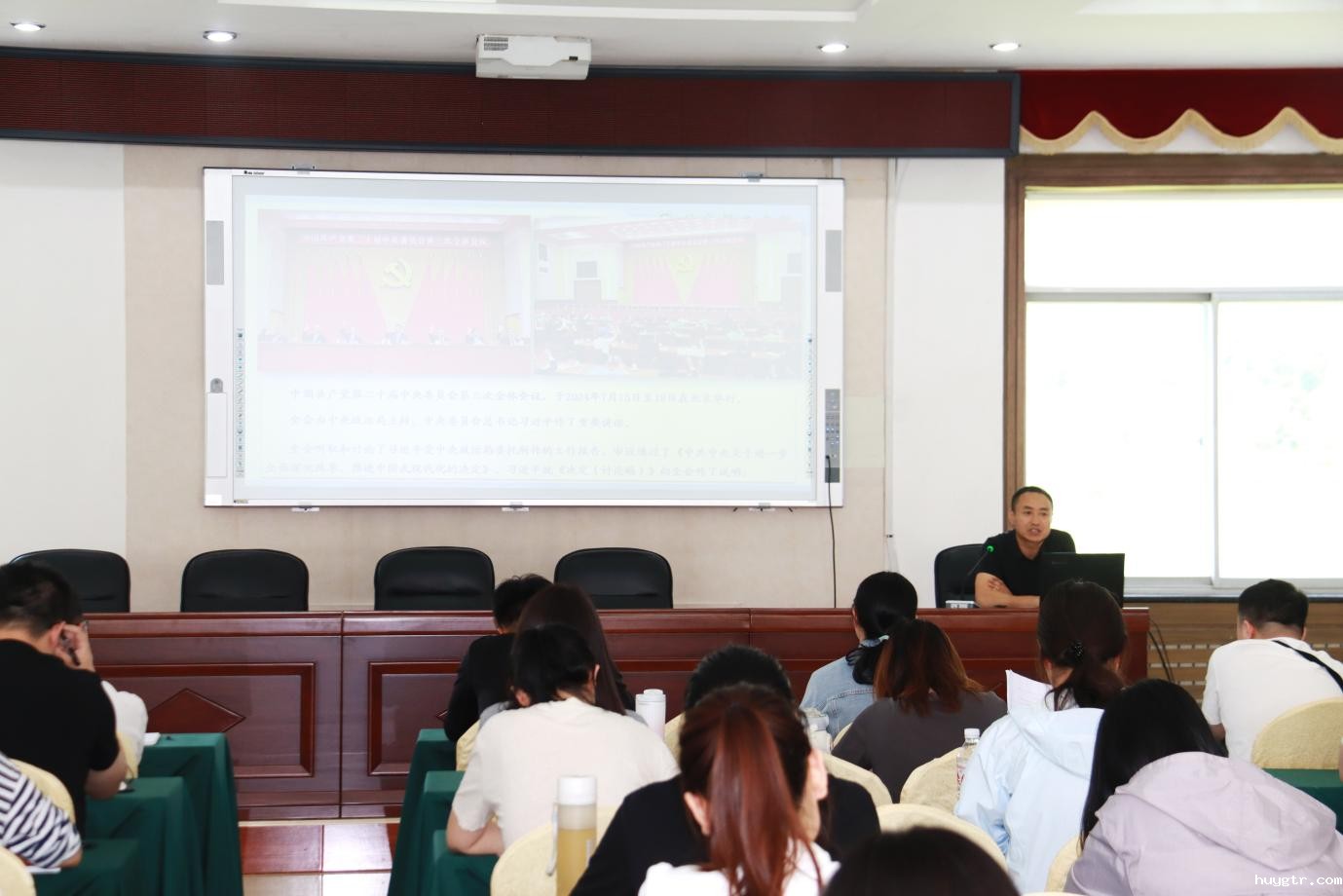 6月4日下午,党校开展年轻干部政治理论专题学习,马克思主义学院院长兼思想政治理论教学部主任范功利讲授,年轻干部60余人参加。