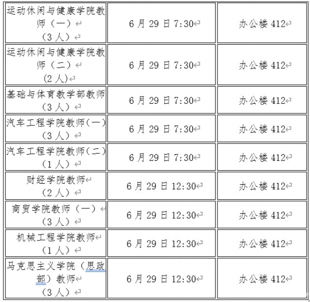 面试考生在引导员引导下依次进入面试考场进行面试。辅导员、组织部干事、会计岗位进行结构化面试,每人结构化面试时间不超过15分钟。其余教师岗位进行试讲面试,试讲题目及要求详见附件2,试讲要求写板书,不允许使用PPT,每人试讲时间不超过15分钟,面试完成后考生离开面试考场到候分室候分。