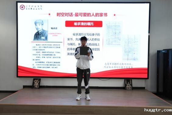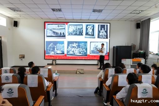 在“铭刻·历史的刀锋”环节中,特邀我院校外实践指导教师、中共铁岭市委党史研究室主任关利群主以“伟大抗美援朝精神”为主题的非遗版画艺术作品为切口,解读伟大抗美援朝精神;在“追忆·英雄的精神”环节,我院青年教师张文财深情讲述了《冰雕连:超越极限的坚守》的悲壮故事,再现了志愿军战士不畏严寒、至死不渝的钢铁意志;青年教师李闯生动诠释了《杨根思与“三个不相信”的英雄宣言》,展现了特级英雄杨根思惊天地、泣鬼神的英勇豪迈和坚定信念,感人的故事让在场师生无不动容;在“对话·时空的回响”环节,学生代表王嘉凯声情并茂地诵读了志愿军烈士的家书。纸短情长,字字千钧,承载着家国情怀与铁血柔情,仿佛穿越时空与先烈进行了一场直抵心灵的对话。随后,青年教师田贺元以《素笺传深情热血铸忠诚》为主题对家书背后的故事进行了深入讲解,剖析了家书背后深沉的情感力量与忠诚担当;在“传承·精神的誓言”环节,四位青年学生代表朗读了《致最可爱的人——一封来自新时代青年的回信》,表达了新时代青年对先烈的无限崇敬和继承遗志、报效祖国的坚定决心。最后,全体与会人员高唱《歌唱祖国》,激昂的歌声将现场氛围推向高潮,爱国热情澎湃激荡。
